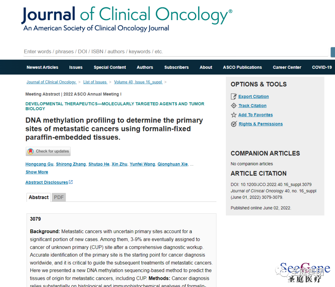 2022 ASCO|圣庭醫(yī)療腫瘤甲基化研究成果亮相ASCO
