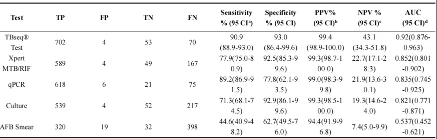 Table 1 不同檢測方法的結核病診斷性能