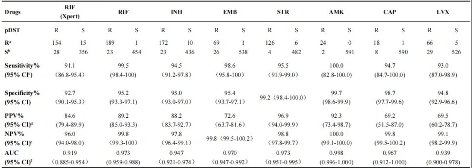 Table 2 TBseq®對不同結核藥物耐藥的預測能力